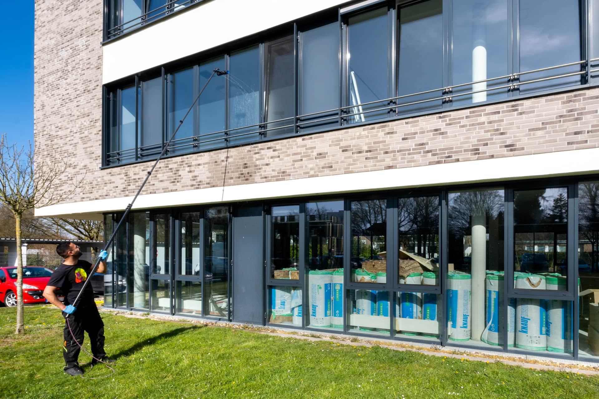 Das Verfahren der Osmosereinigung ist bestens geeignet, um große und schwer erreichbare Glasflächen effektiv zu reinigen. Und das komplett ohne Chemie, auch das Aufstellen von Aufstiegshilfen wie Gerüste oder Leitern entfällt – so wird der Aufwand und die Beeinträchtigung des laufenden Betriebs so gering wie möglich gehalten.